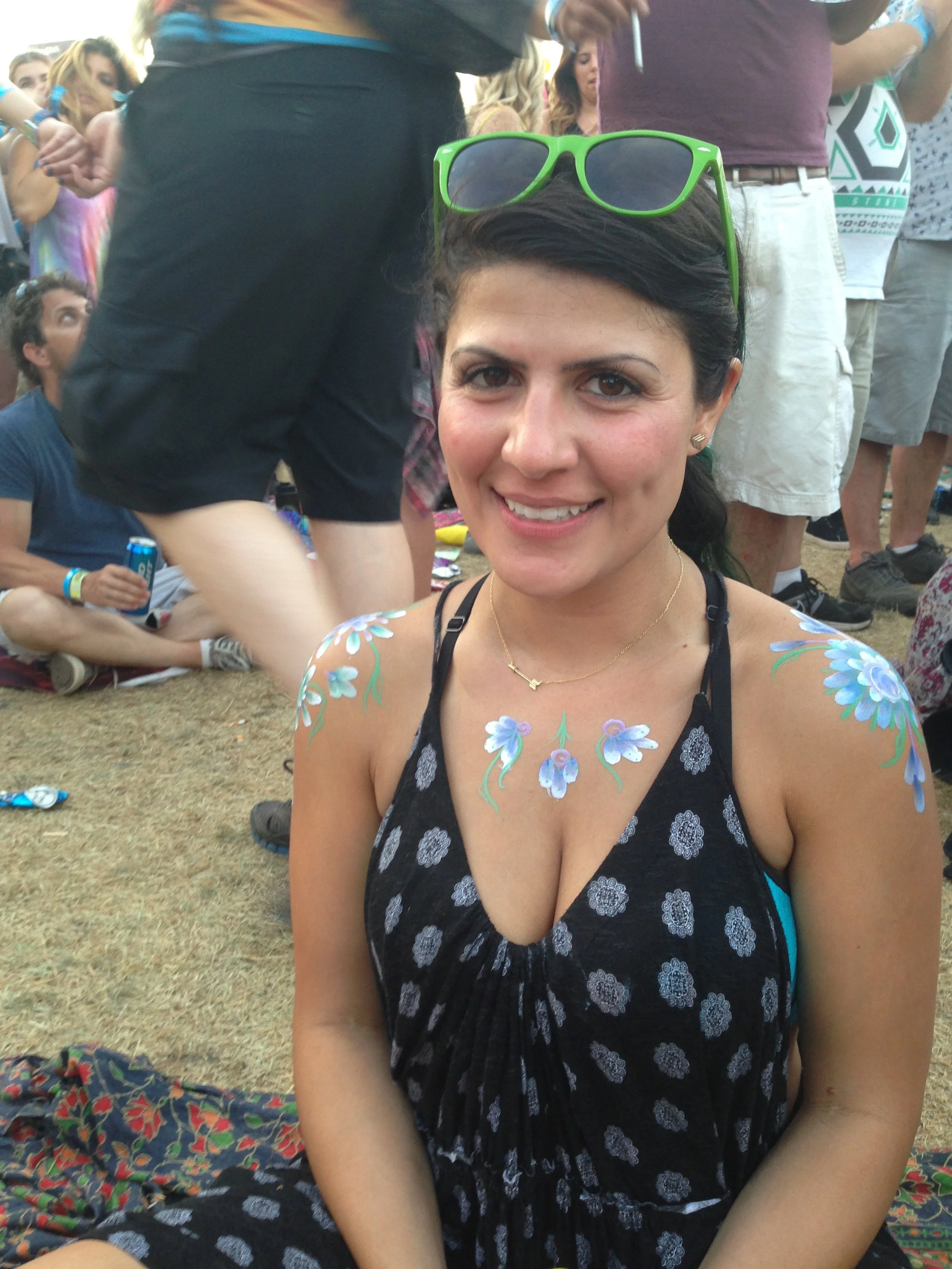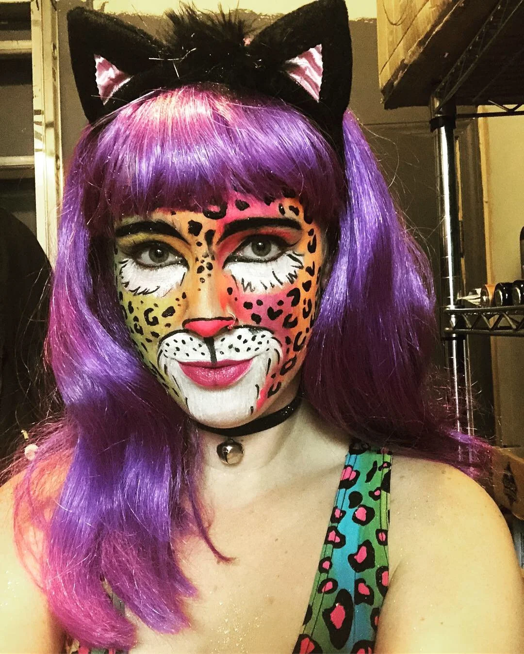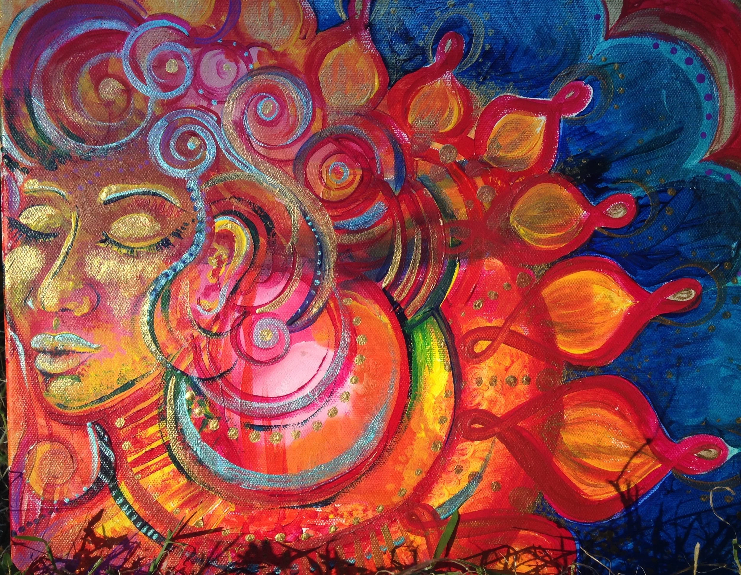 I love to create paintings using acrylic paint, Posca paint markers, house paint, watercolors, fabric paint and body paint. Metallic gold and bright colors are my jam! I work primarily on canvas, wood, and walls. My glass paintings are displayed under the “Stained Glass” category.